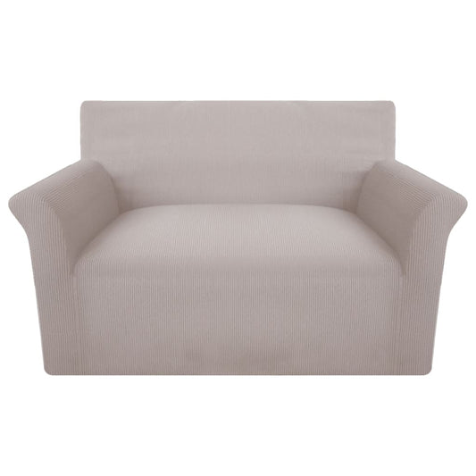Bankhoes Stretch Polyester Ribstof Beige