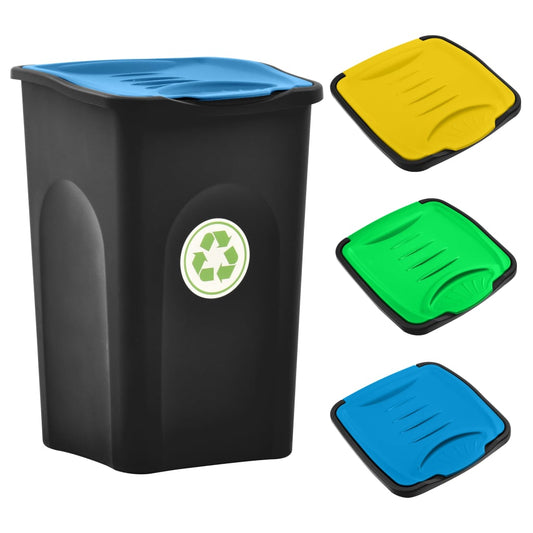 Vuilnisbak Met Scharnierdeksel 50 L Zwart En Blauw