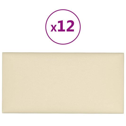 Wandpanelen 12 St 0,54 M² 30X15 Cm Kunstleer Crèmekleurig