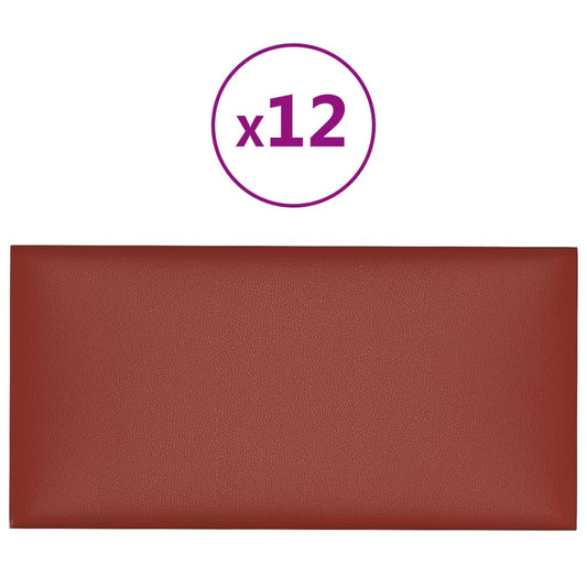 Wandpanelen 12 St 0,54 M² 30X15 Cm Kunstleer Wijnrood