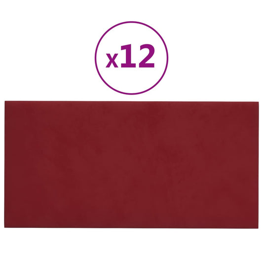 Wandpanelen 12 St 0,54 M² 30X15 Cm Fluweel Wijnrood