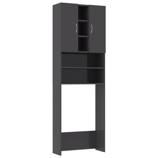 Wasmachinekast 64X25,5X190 Cm Hoogglans Grijs