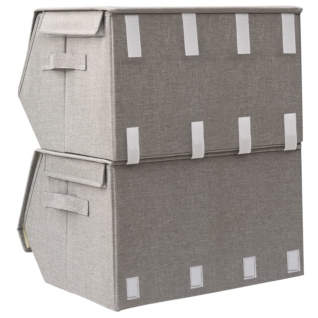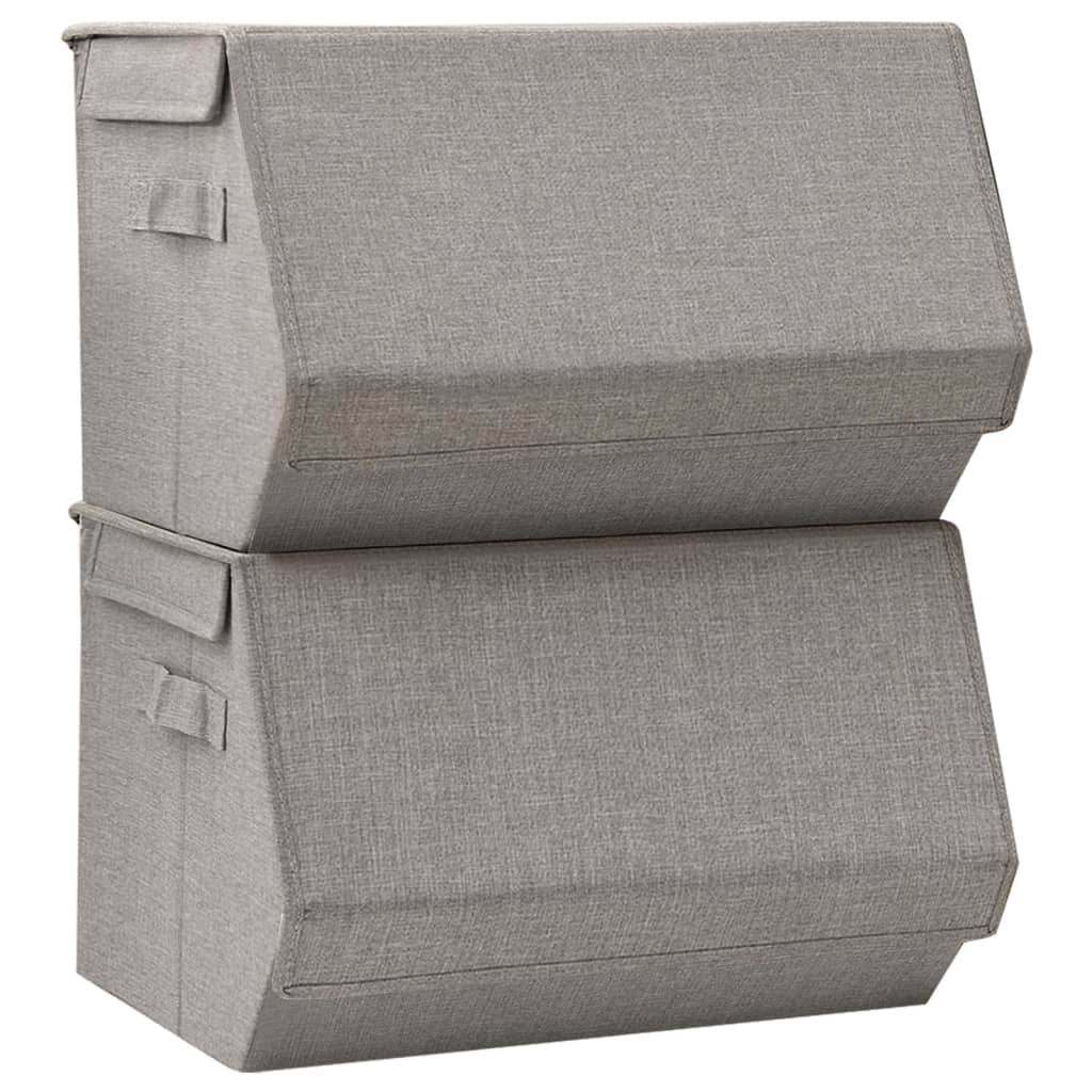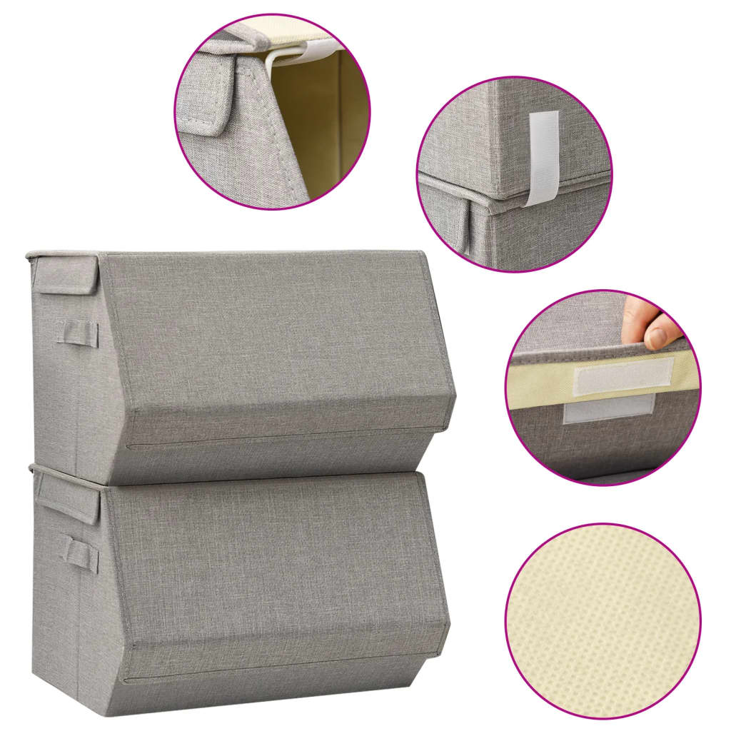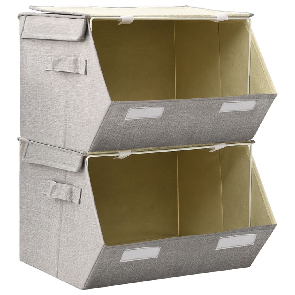 2-Delige Opbergboxenset Met Deksel Stapelbaar Stof Grijs