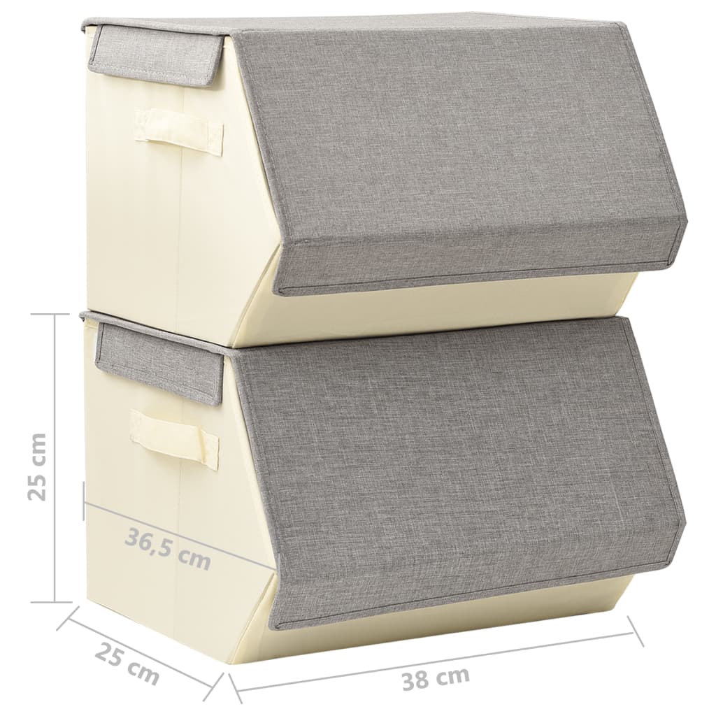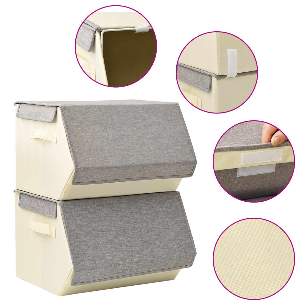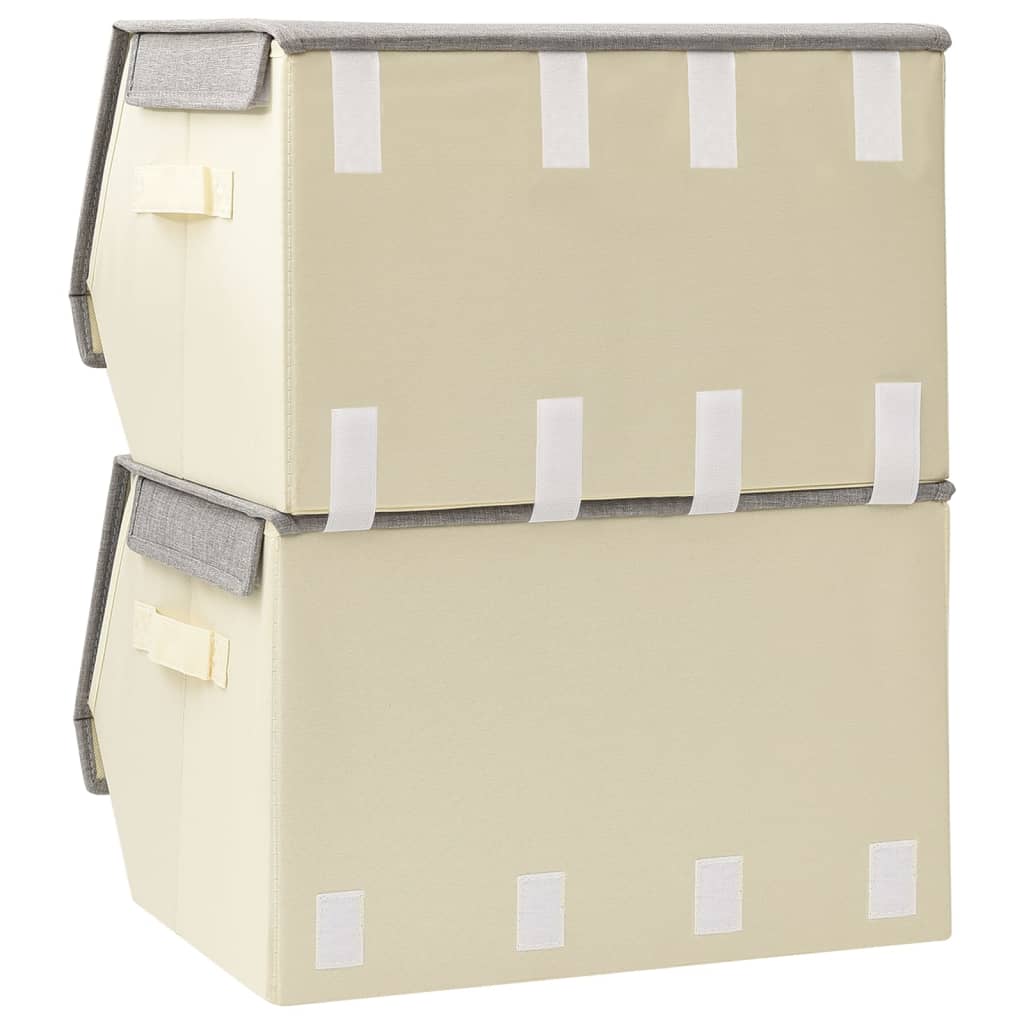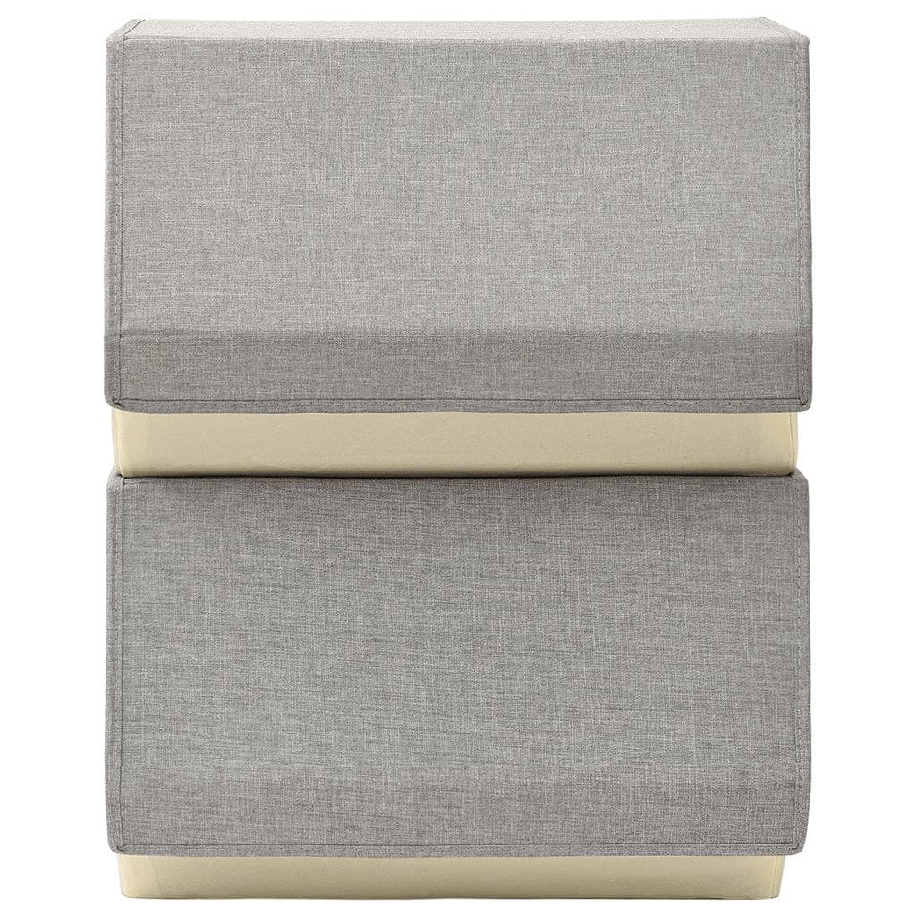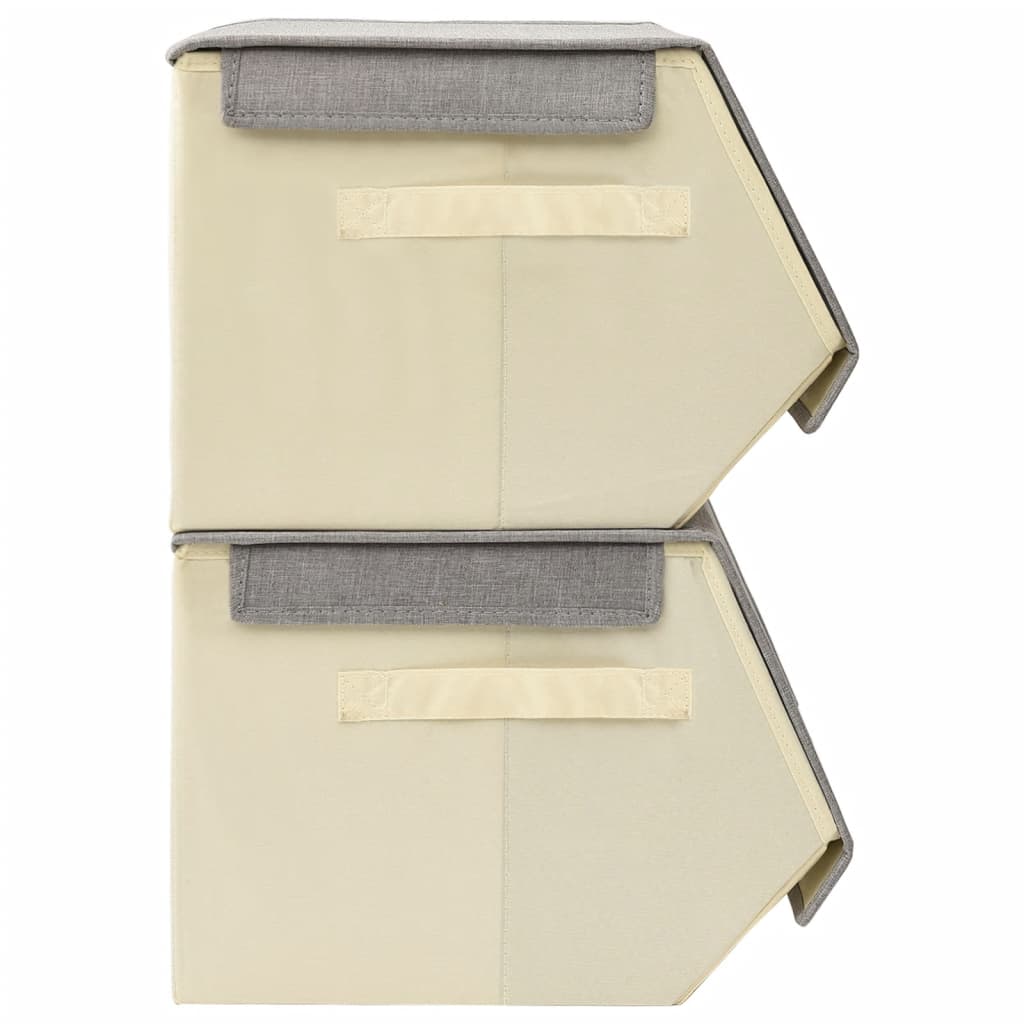 2-Delige Opbergboxenset Met Deksel Stapelbaar Stof Grijs Crème