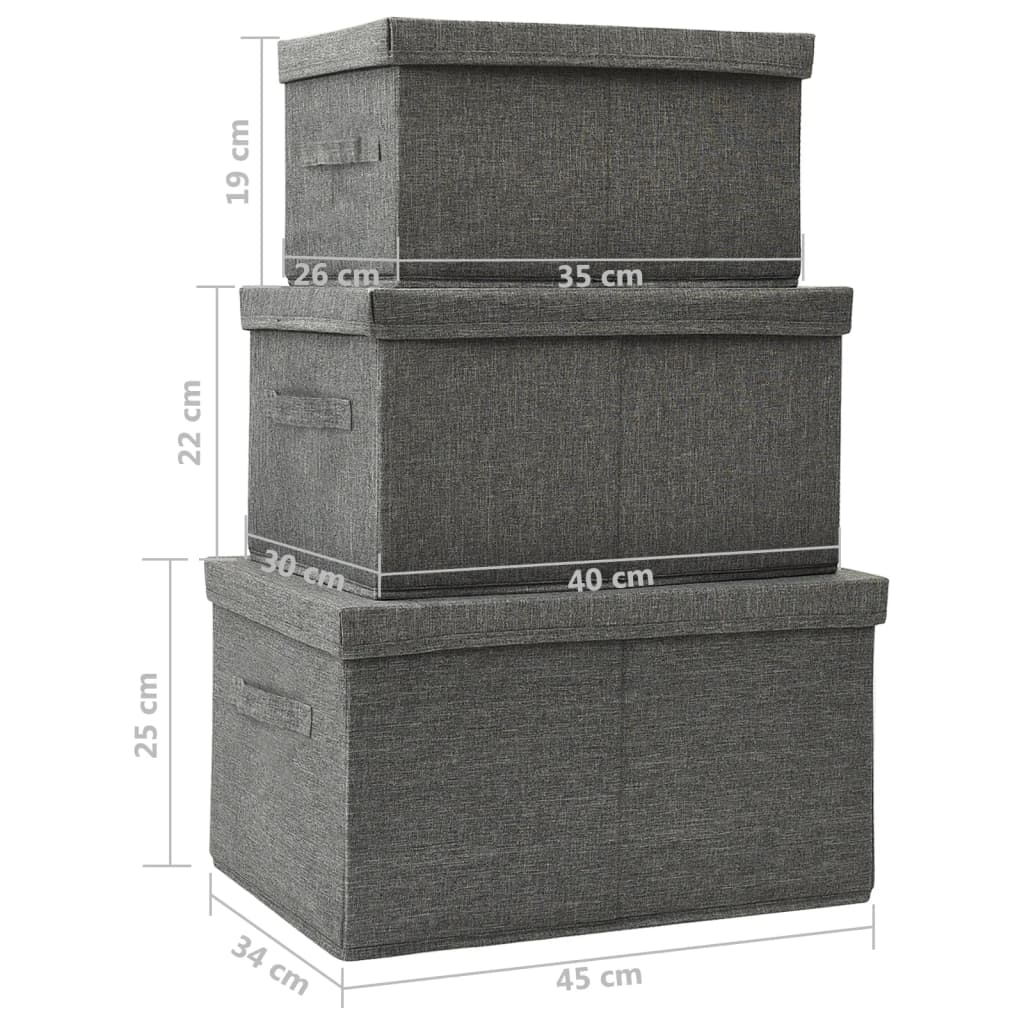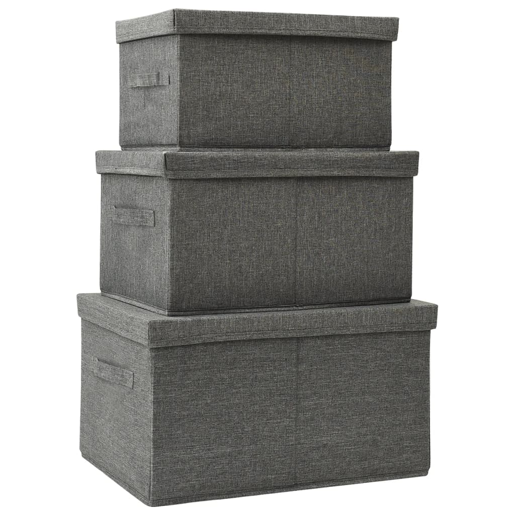 3-Delige Opbergboxenset Stapelbaar Stof Antracietkleurig