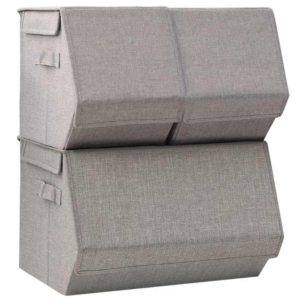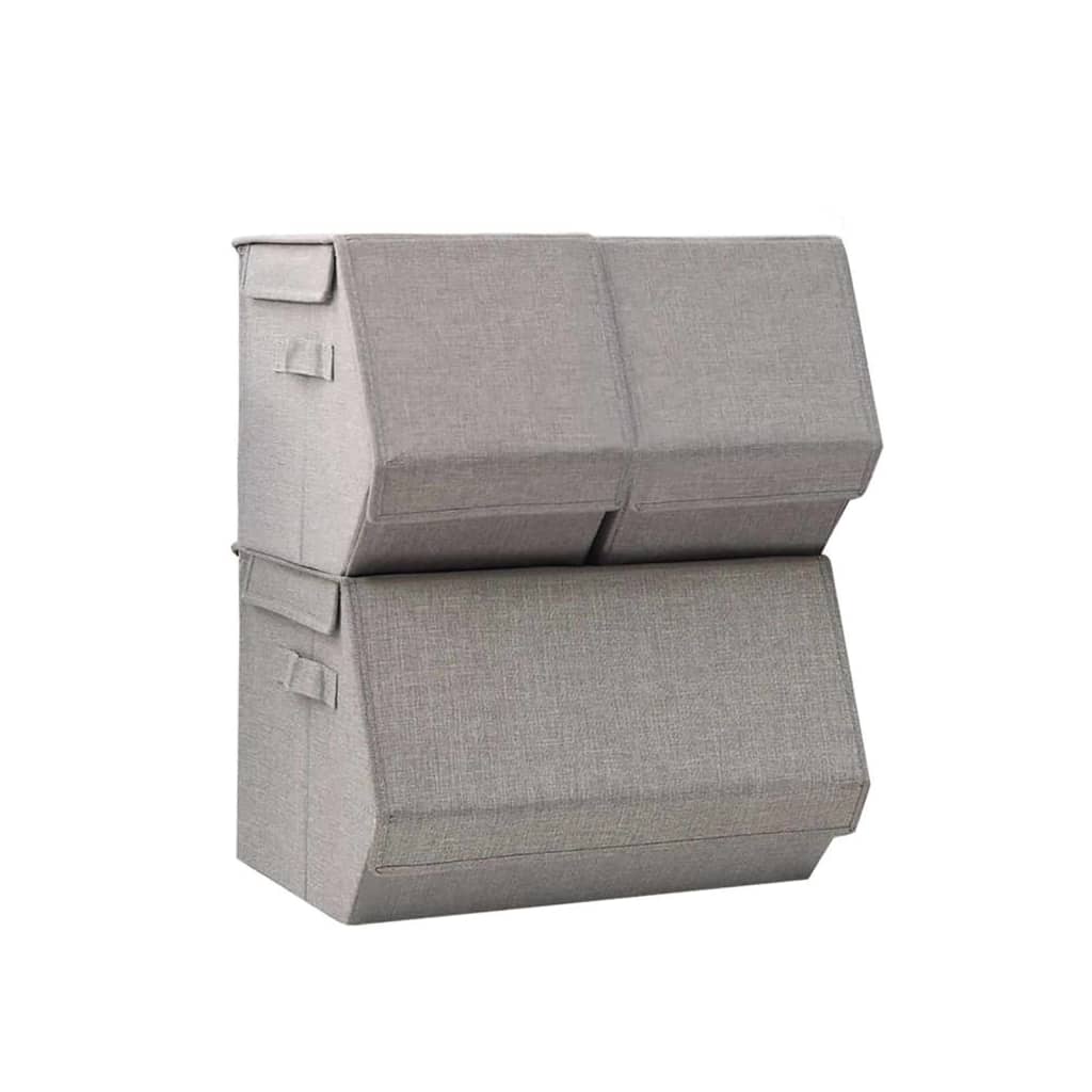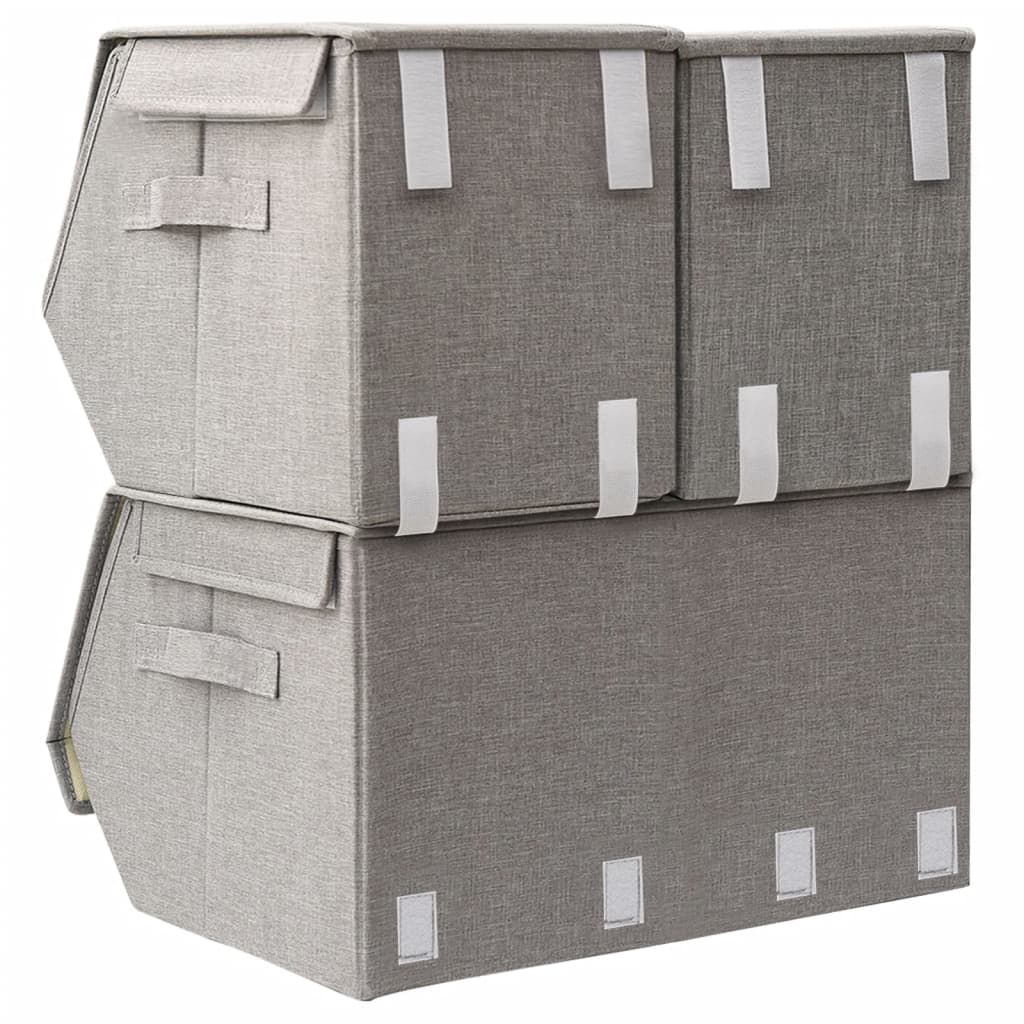 3-Delige Opbergboxenset Stapelbaar Stof Grijs