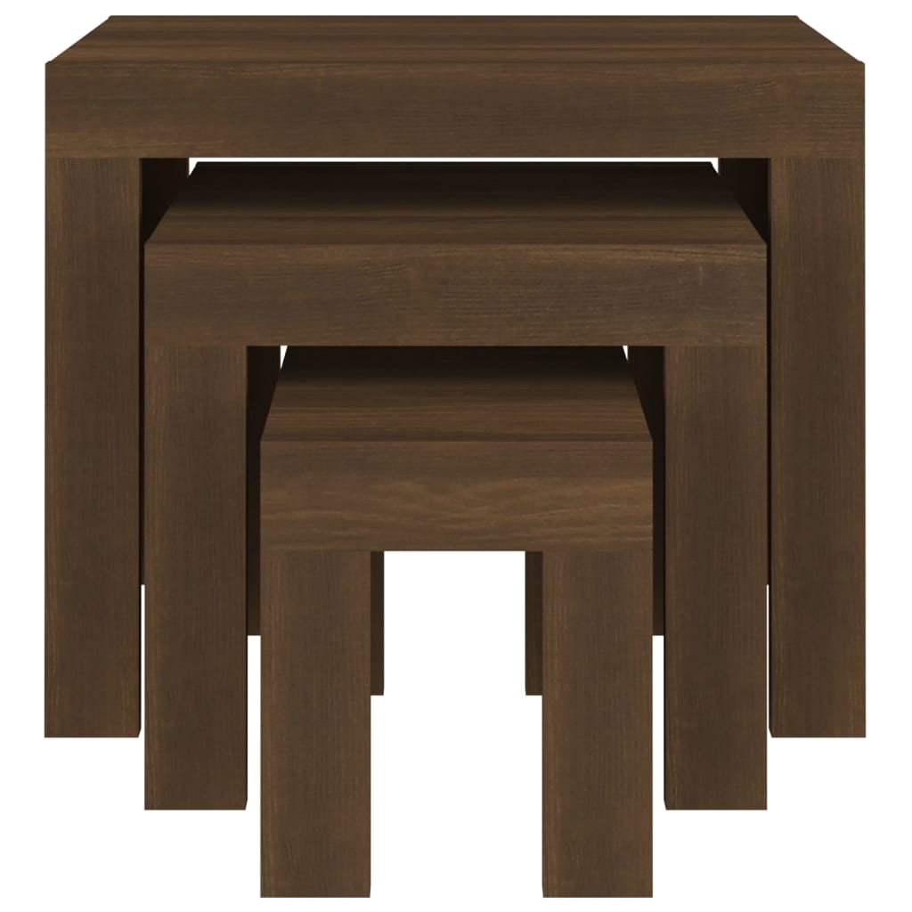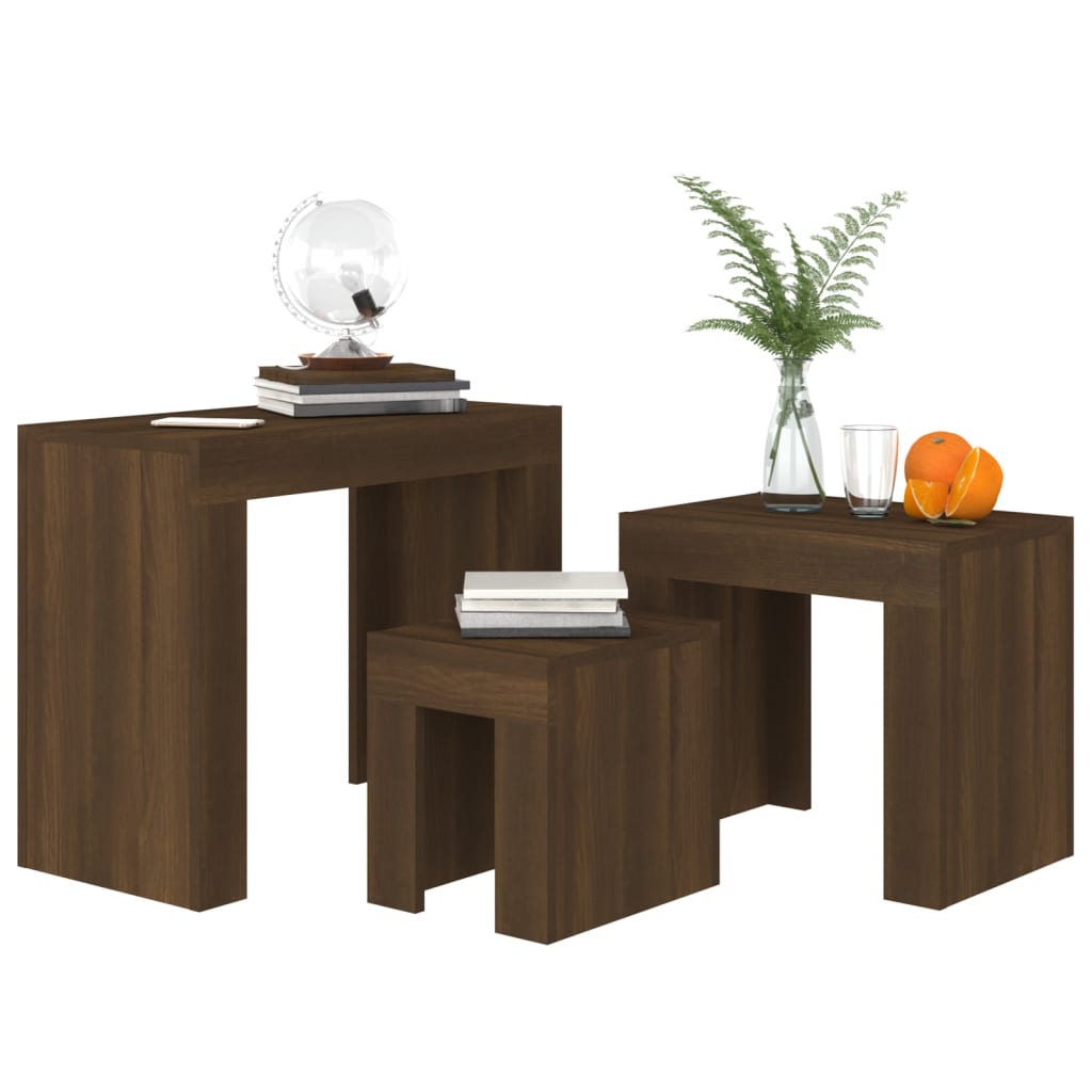 3-Delige Tafeltjesset Bewerkt Hout Bruineikenkleurig
