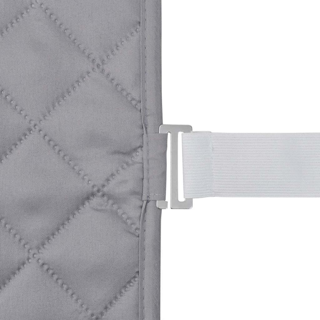 De hoes wordt geleverd met schuimrubberen strips die in de zomen van de kussens kunnen worden geplaatst om de hoes op zijn plek te houden. Om de achterkant van de bank zit een elastische bank om de hoes goed op zijn plek te houden en te voorkomen dat deze naar beneden glijdt.