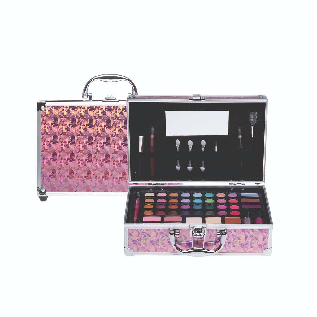 Een Mooie Roze Make-Up Koffer Met Holografische Buitenkant. De Koffer Bevat Verscheidene Kleuren Oogschaduw, Rouge En Lipgloss. Ook Vind Je In Dit Koffertje Verschillende Soorten Kwastjes Voor Het Aanbrengen Van Make-Up, En Een Spiegel Aan De Binnenkant Van Het Deksel, Zodat Je Altijd Kunt Zien Waar Je Mee Bezig Bent. Geschikt Voor Kinderen Vanaf 5 Jaar.