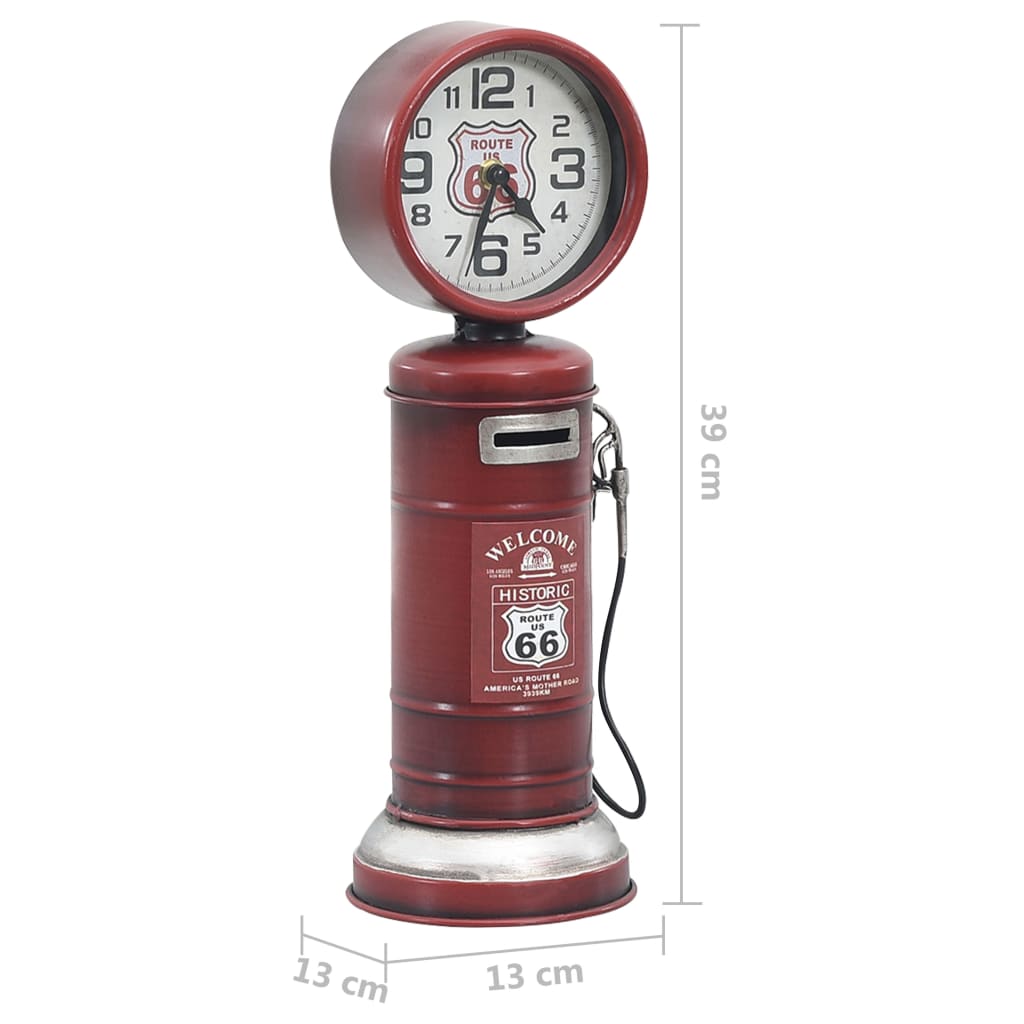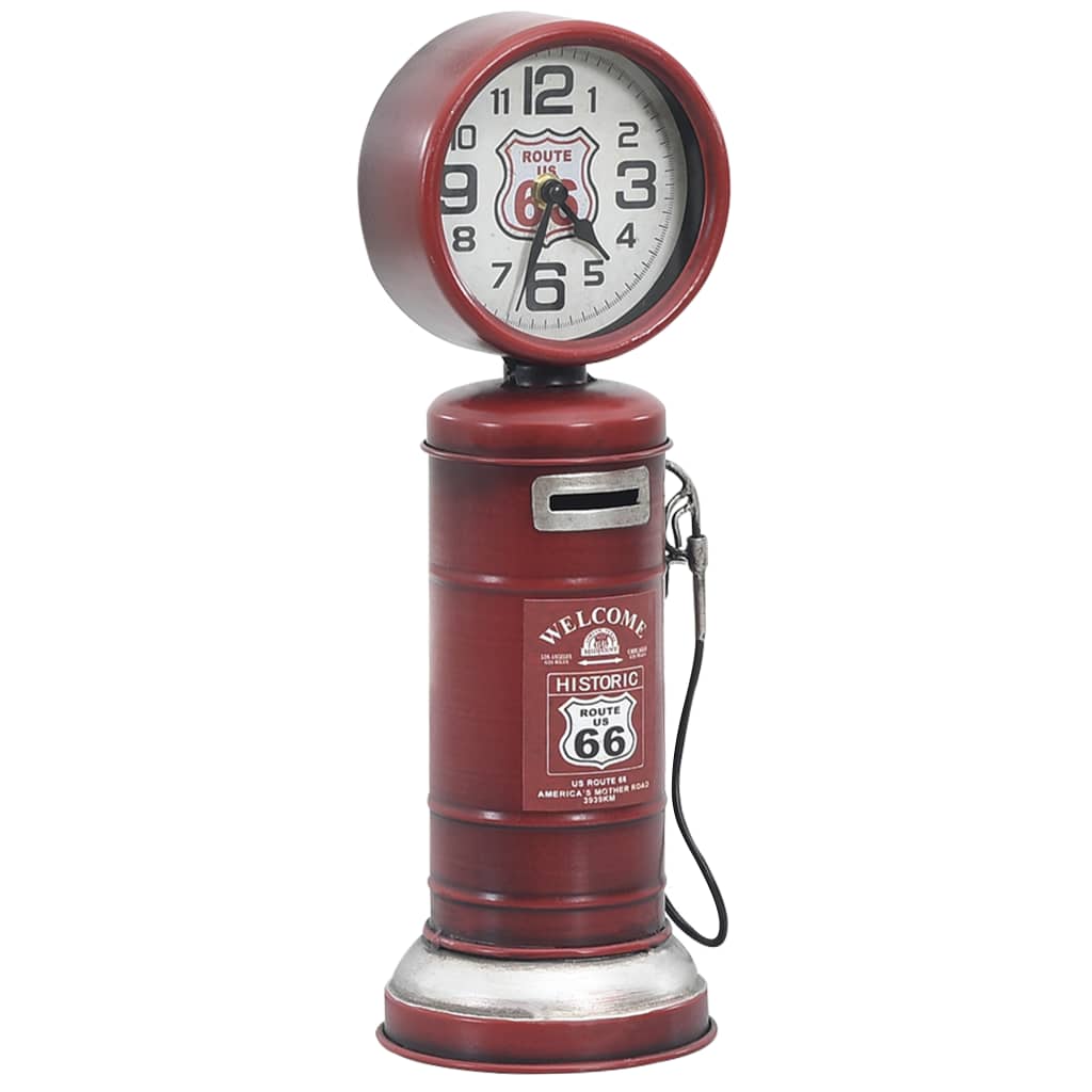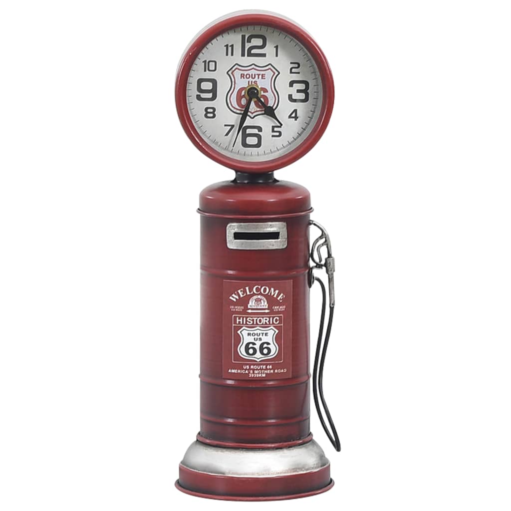 Voeg een pronkstuk toe aan je leefruimte met deze tafelklok, die een vintage benzinepomp ontwerp met slang heeft! Hij kan ook als spaarpot gebruikt worden.