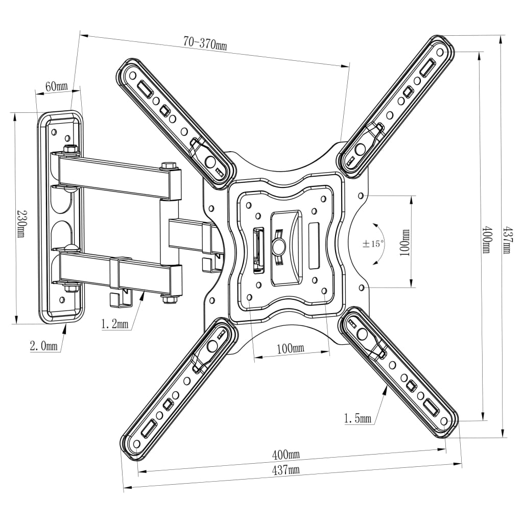 • Afmetingen VESA: 100 x 100 tot 400 x 400 mm