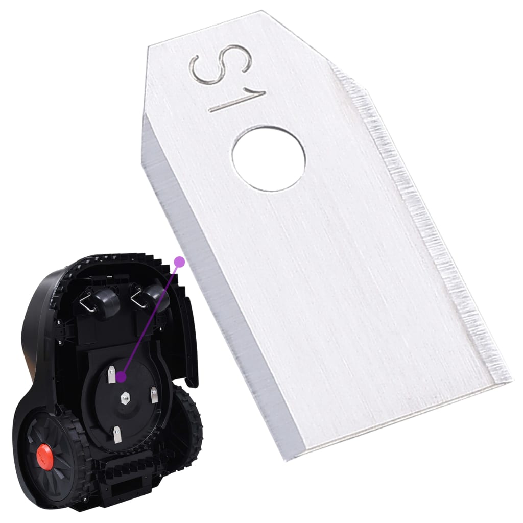 Wanneer je originele robotmaaiermessen gaan roesten, is het tijd om de messen te vervangen. Onze messen zijn gemaakt van roestvrij staal dat sterk en schokbestendig is. Schroeven zijn ook inbegrepen. Opmerking: de messen zijn scherp, wees voorzichtig tijdens montage.