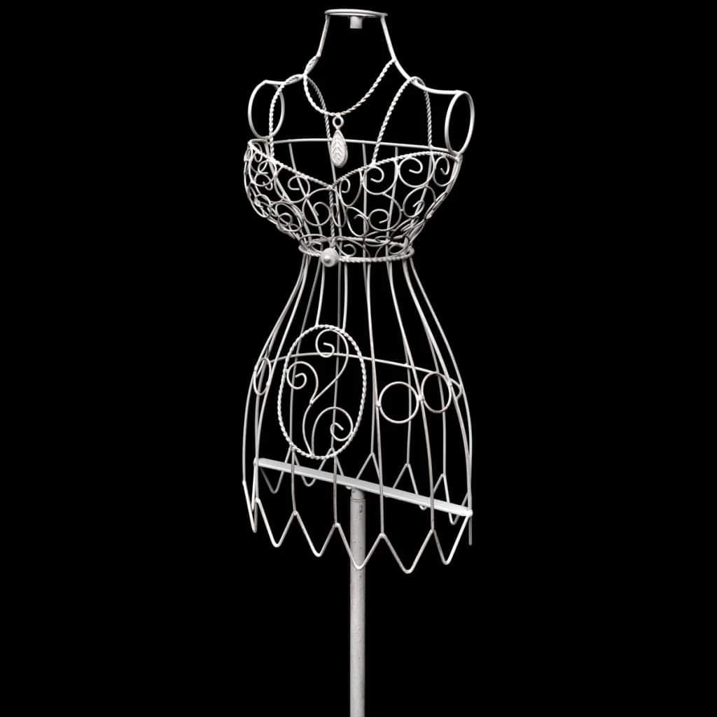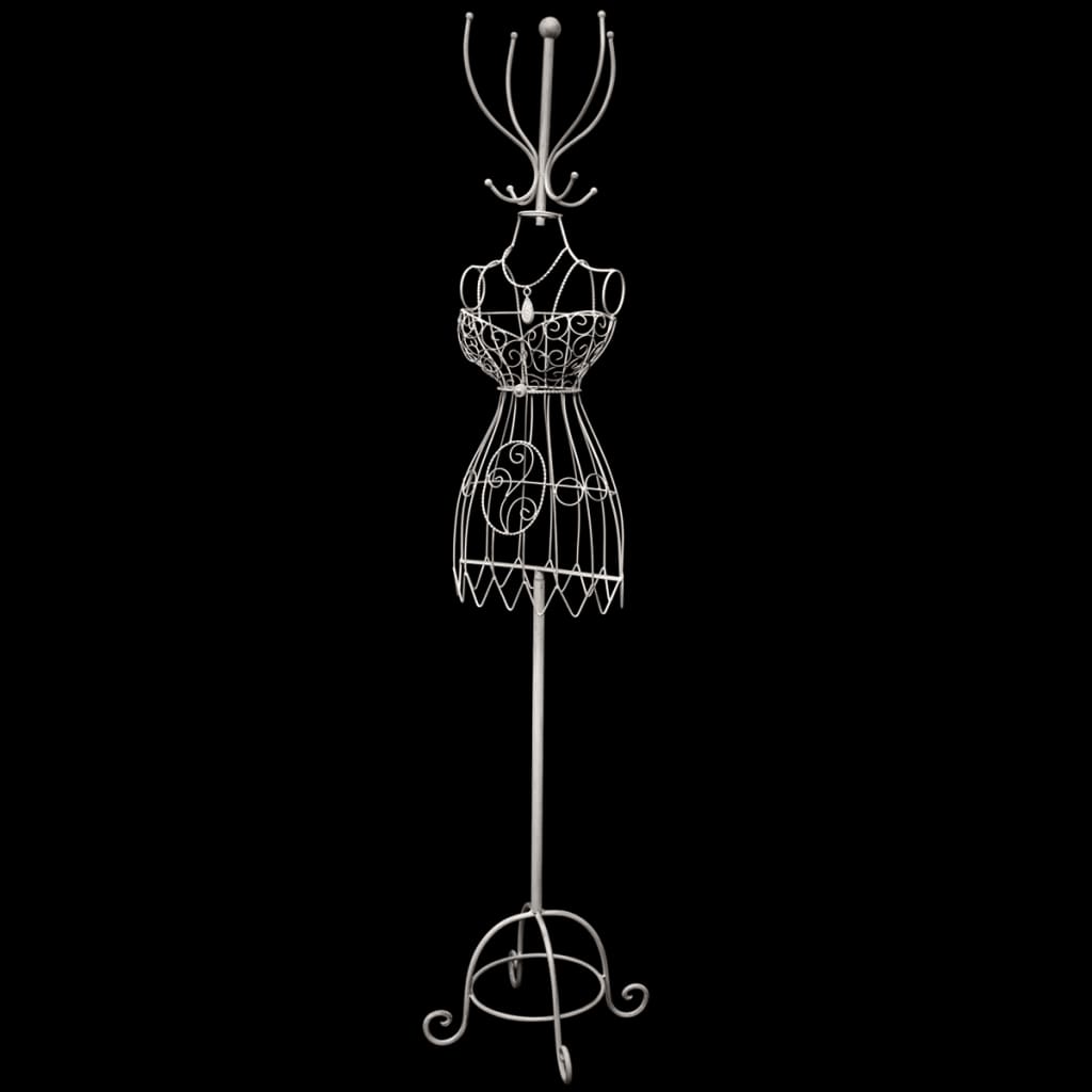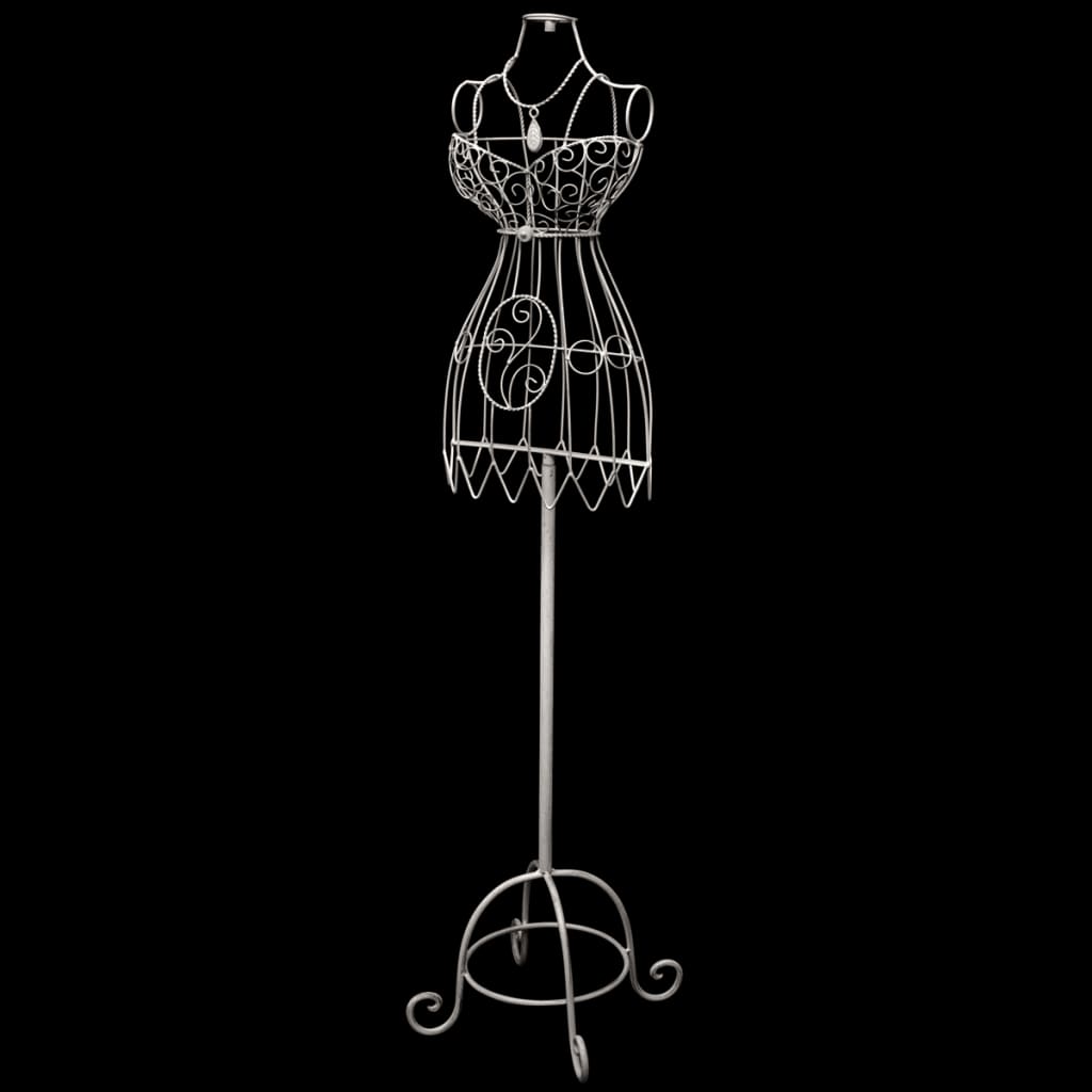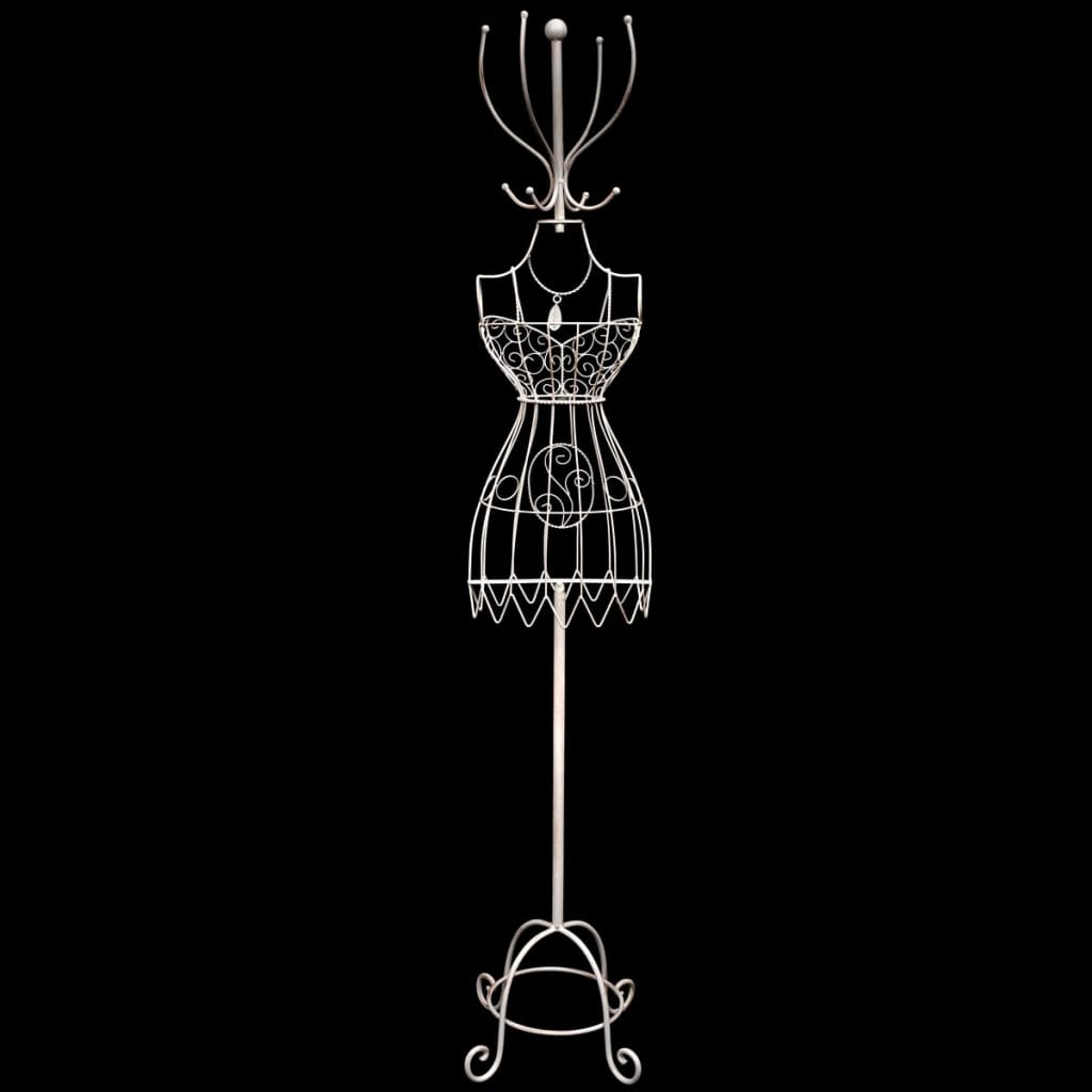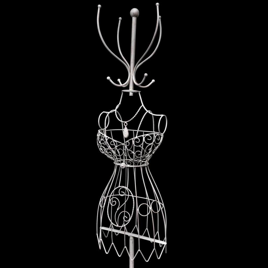 Deze kapstok met vintage ontwerp is ideaal voor het etaleren van kleding. De kapstok is geschikt voor in kledingwinkels, ontwerpers en voor in huis. De mooie jurk van ijzerdraad maakt de pop zonder aankleding al compleet. De pop is ideaal om kleren, sieraden, sjaaltjes, hoeden en tassen aan op te hangen. Het ijzerdraad is vlak en zal het materiaal van de kleding niet beschadigen. De kapstok heeft ook haken waaraan jassen en kledinghangers gehangen kunnen worden. Het onderstel kan worden verwijderd.