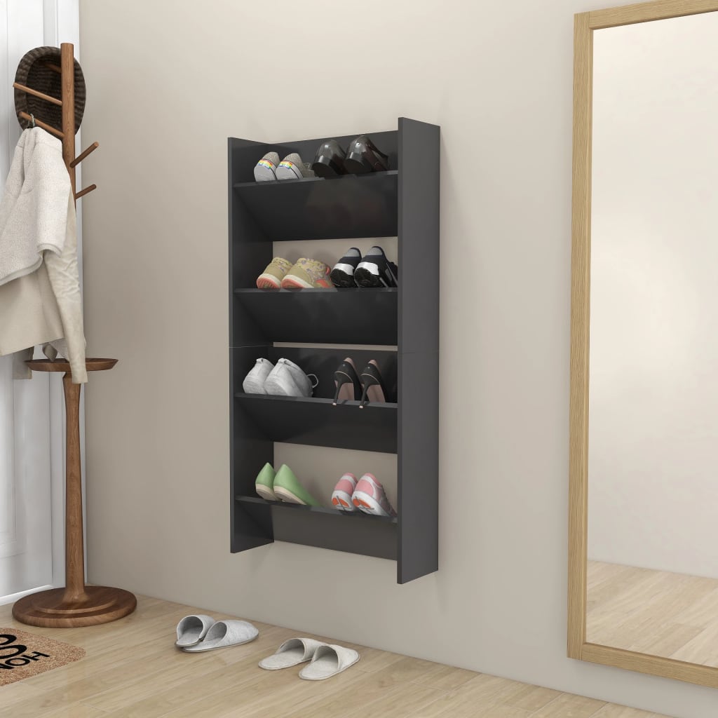 Wandschoenenkasten 2 St 60X18X60 Cm Spaanplaat Grijs