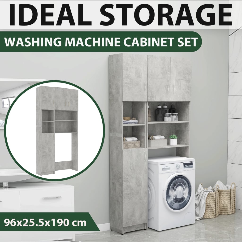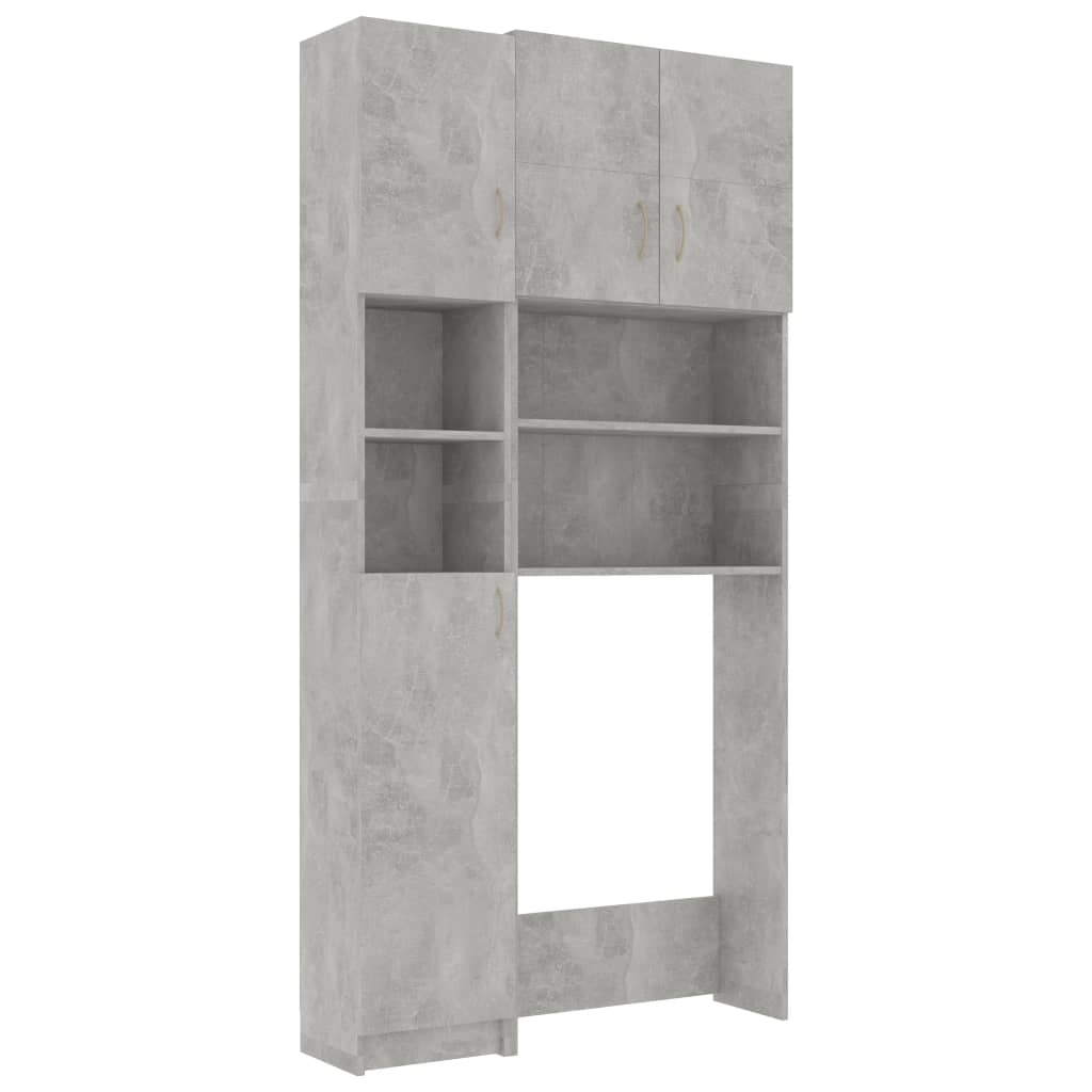 Onze chique wasmachinekastenset bestaat uit 2 wasmachinekasten: een grote en een kleine. De grote heeft 2 open vakken en 2 deuren, de kleine is uitgerust met 4 schappen met deuren en 2 open schappen. De kasten bieden verschillende opbergmogelijkheden en voldoende opbergruimte om je wasgoed, schoonmaakspullen, toiletartikelen en andere spullen georganiseerd en binnen handbereik op te bergen. De badkamerkasten zijn gemaakt van spaanplaat en zijn stevig en duurzaam. Bovendien zijn deze wasruimterekken gemakkelijk schoon te maken met een vochtige doek.