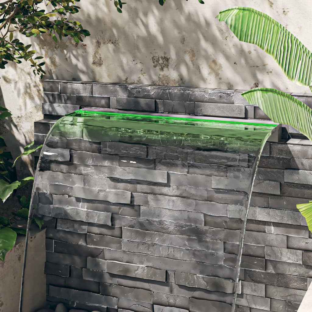 Deze watervaloverlaat met kleurrijke LED-verlichting is een decoratieve aanvulling op je vijver of zwembad. Geniet van het rustgevende geluid en uitzicht van het vallende water!