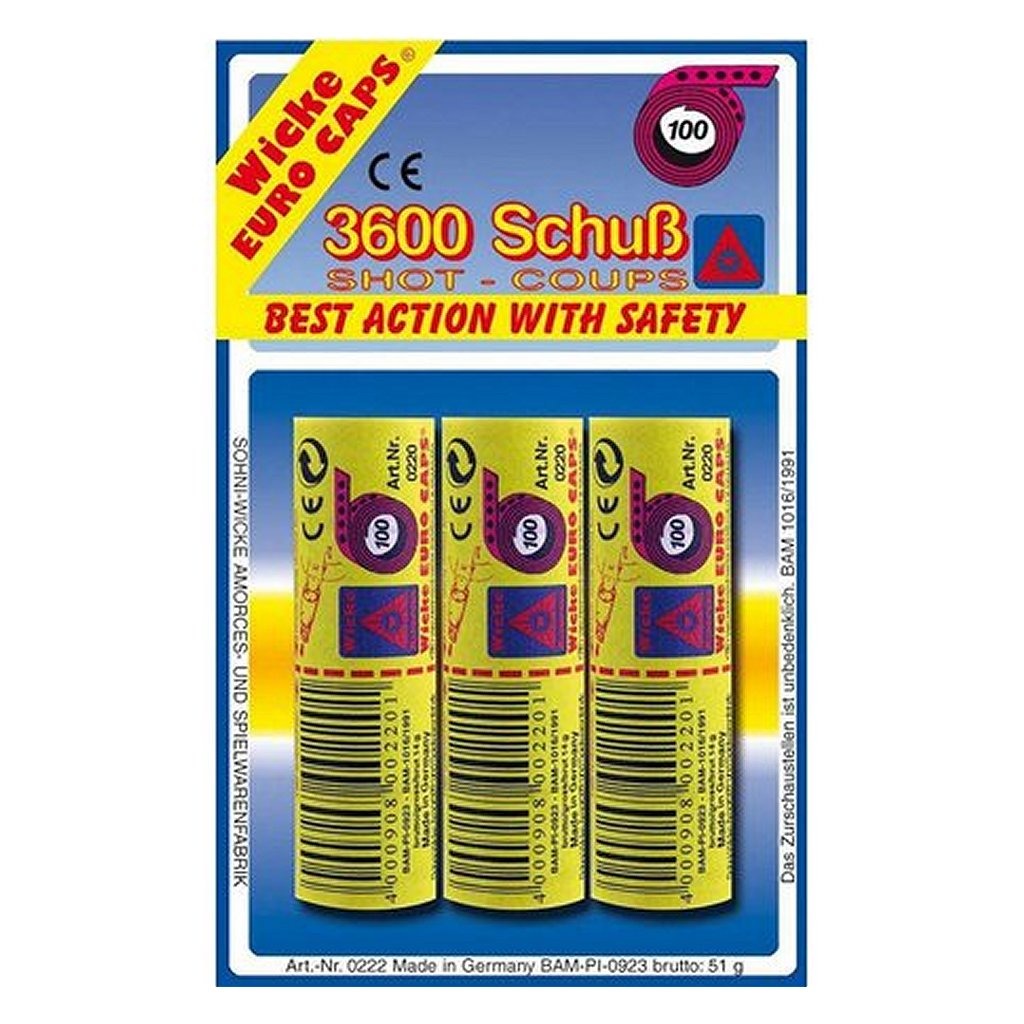 Wicke Navulverpakking Voor Je Klappertjespistool.3 Rollen Enelke Rol Bevat 12 X 100 Schoten, 3600 Schoten In Totaal!