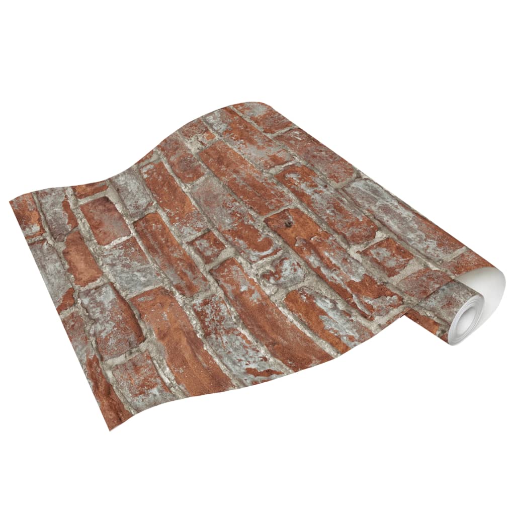 2 St Vliesbehangrollen Baksteen 0,53X10 M Bruin En Rood