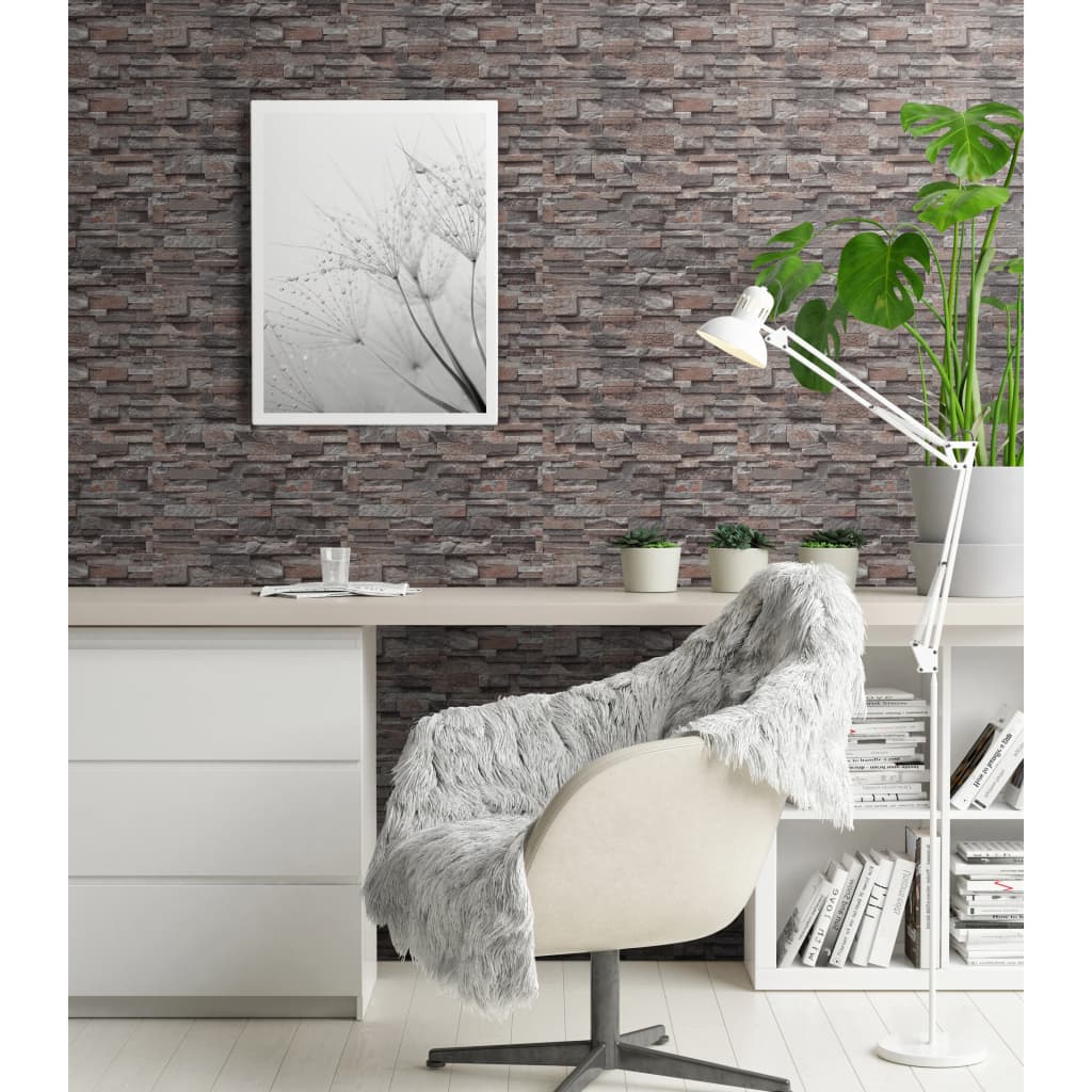 2 St Vliesbehangrollen Baksteen 0,53X10 M Donkergrijs