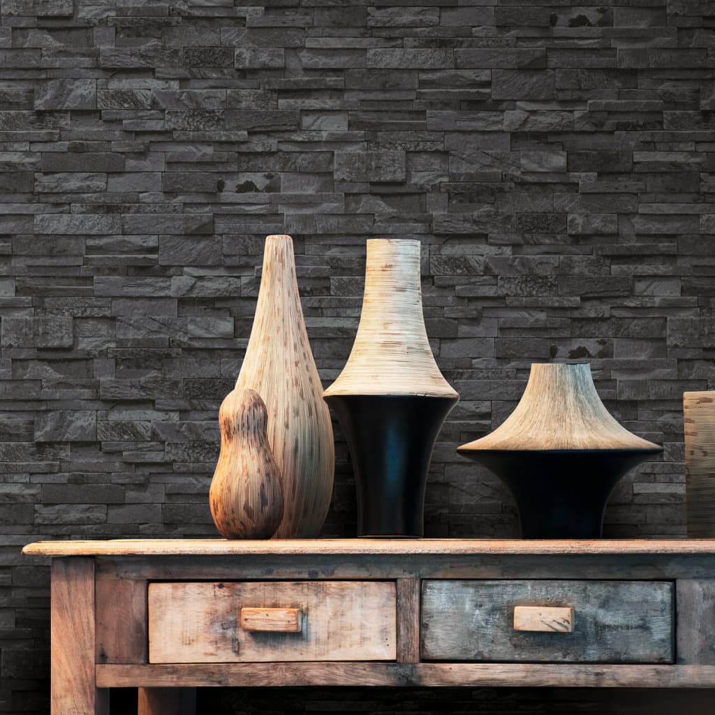 4 St Vliesbehangrollen Baksteen 0,53X10 M Zwart