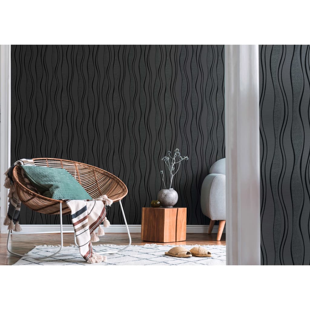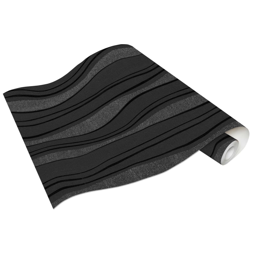 4 St Vliesbehangrollen Golven 0,53X10 M Zwart
