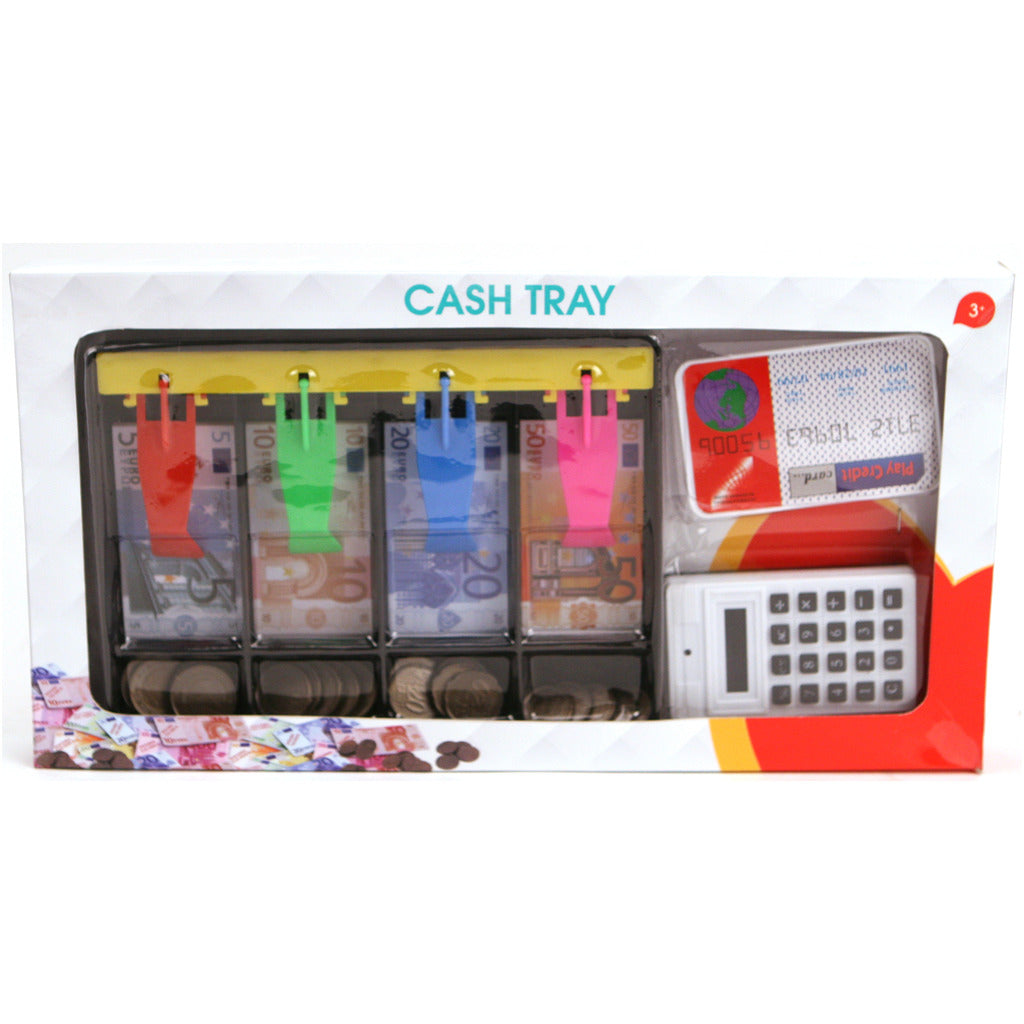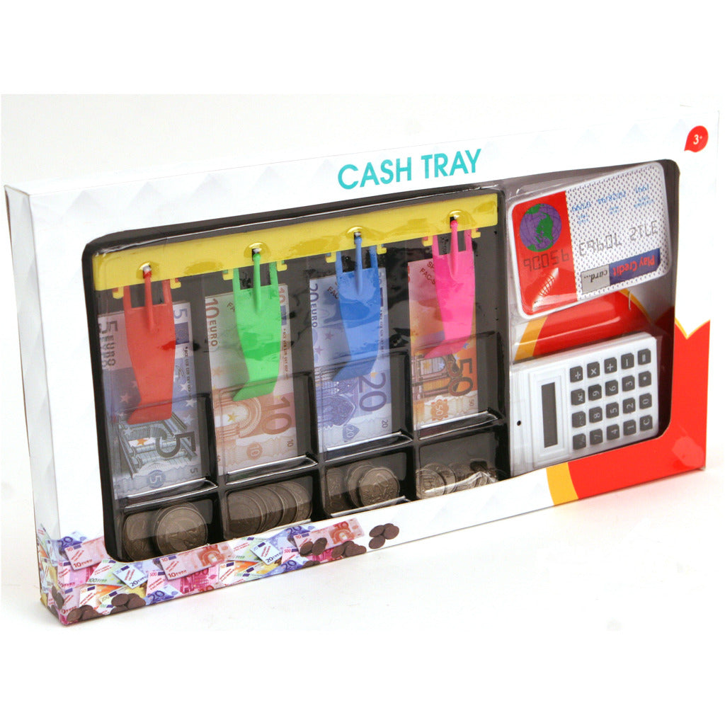 Kassalade Met Eurobiljetten En -Munten, Creditcard En Mini-Kassa/Rekenmachine