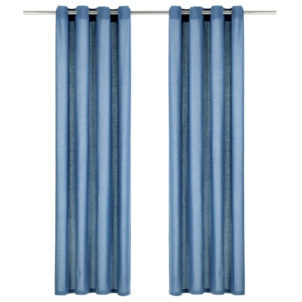 Gordijnen Met Metalen Ringen 2 St 140X175 Cm Katoen Blauw