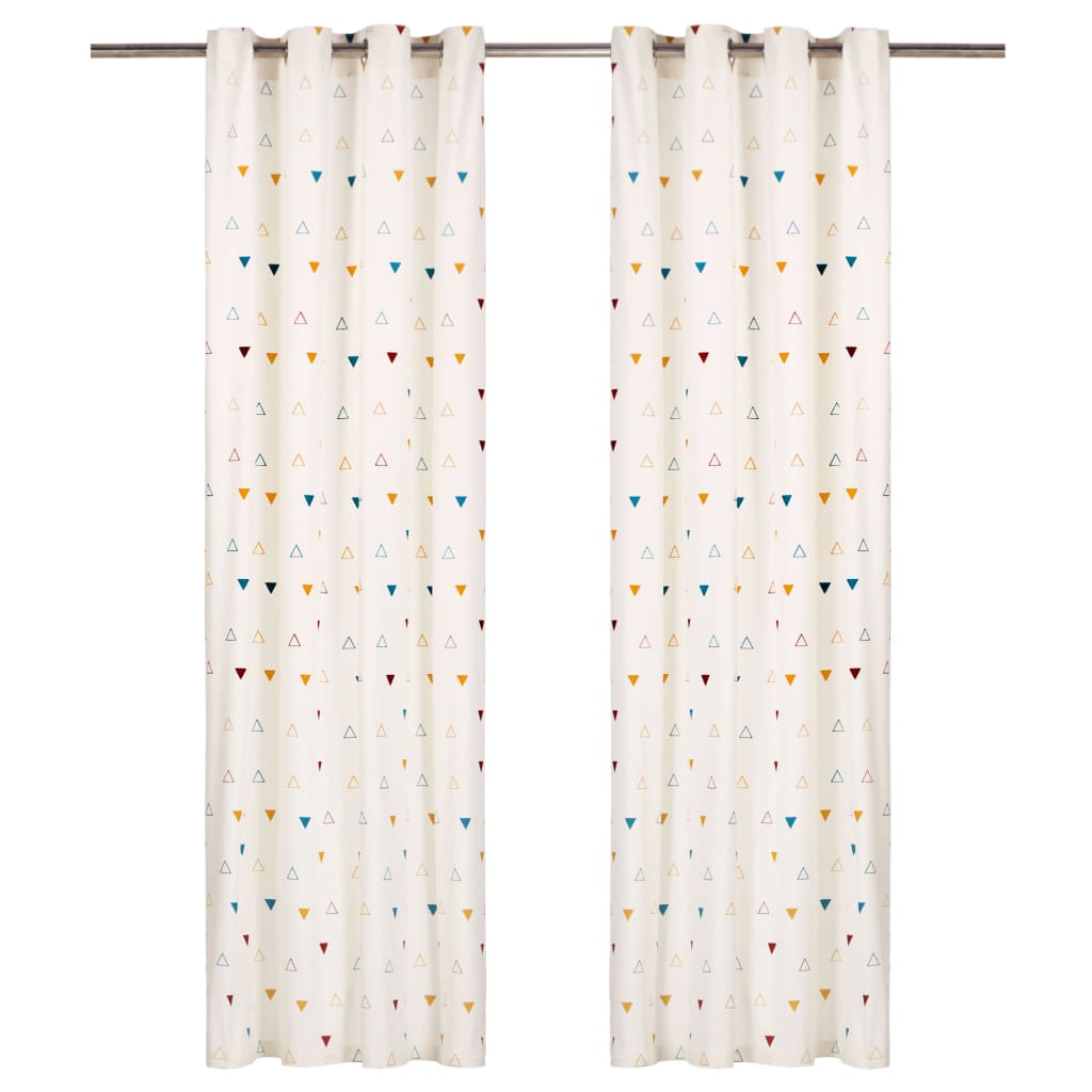 Gordijnen Met Metalen Ringen 2 St 140X175 Cm Katoen Meerkleurige Driehoek