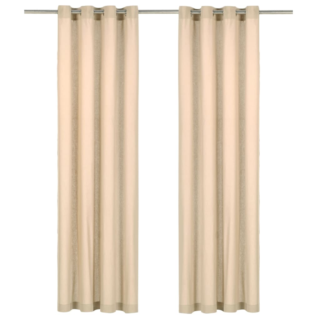 Gordijnen Met Metalen Ringen 2 St 140X225 Cm Katoen Beige