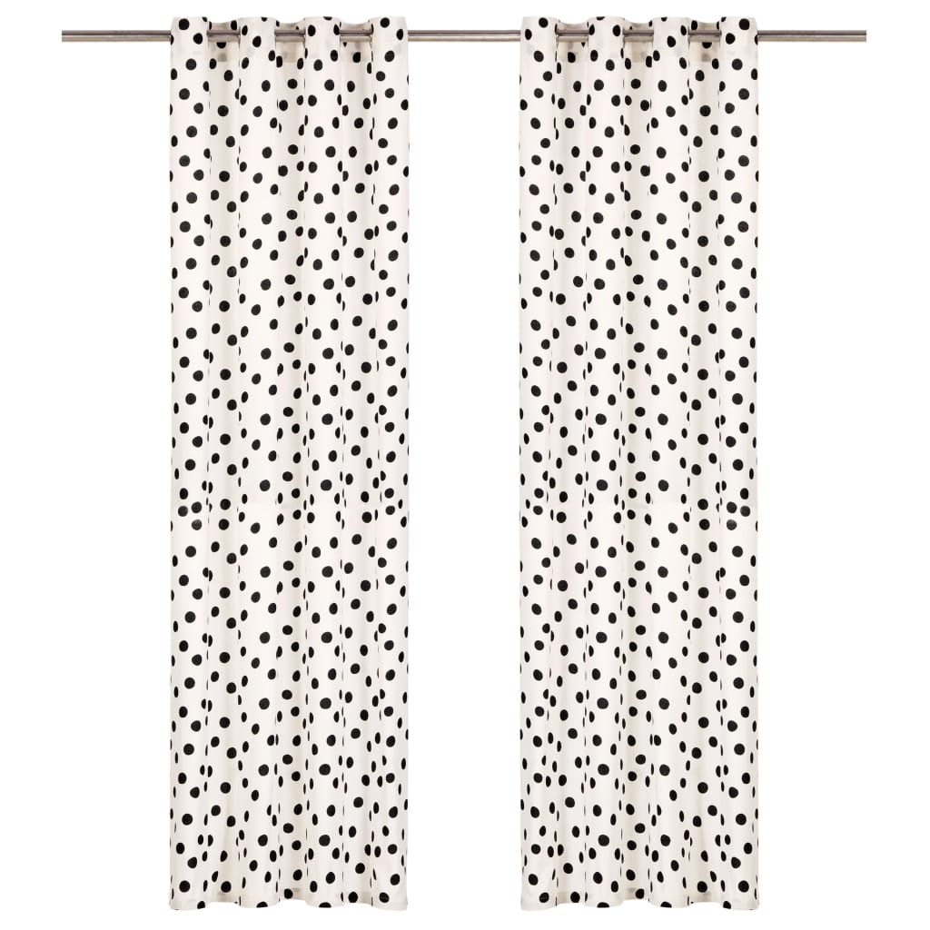 Gordijnen Met Metalen Ringen 2 St 140X225 Cm Katoen Zwarte Stip