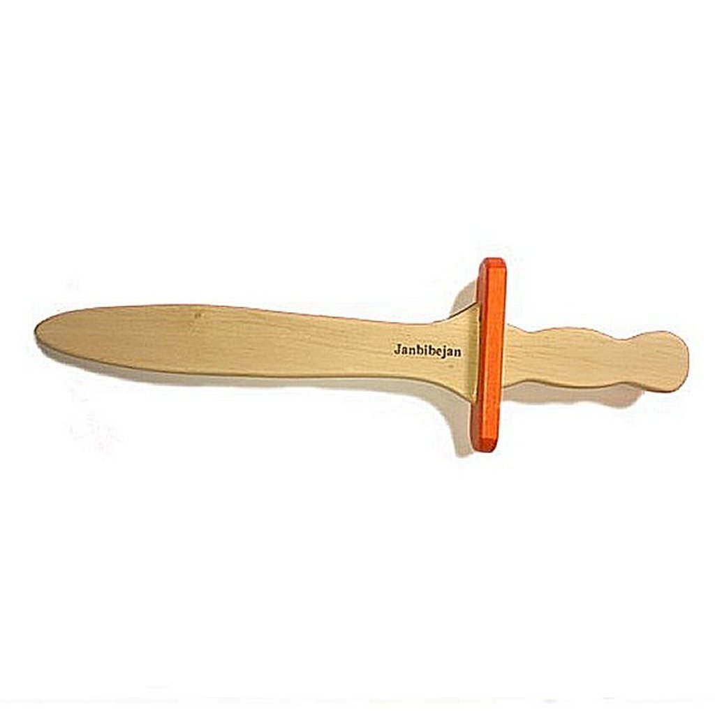 Een Korte Houten Dolk Van Janbibejan. Voor Ridders Of Piraten! Afgewerkt Met Een Oranje Tintje.