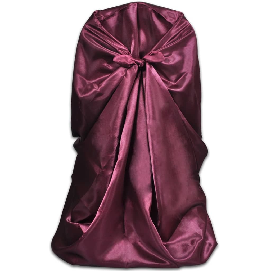 Deze bordeauxrode stoelhoes is geschikt voor alle gangbare bruilofts- of conferentiestoelen met ronde of vierkante rugleuning.